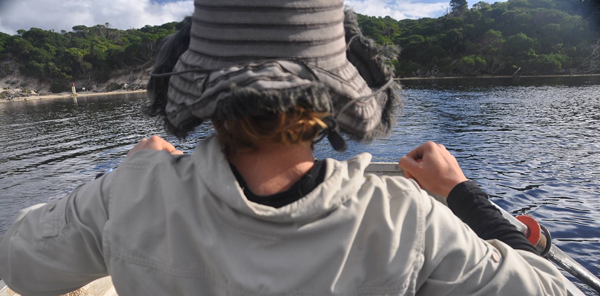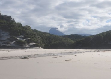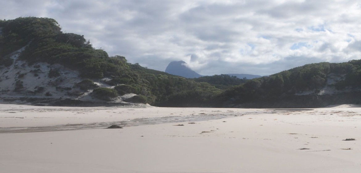 We head around the bay and over Menzies Bluff, along the coast we find ourselves on Prion Beach a 6km jewel of white sand stretching to the mouth of New River Lagoon. At the lagoon we board rowboats for the crossing then again climbing inland around Wierah Hill and diverting to before diverting to the nights camp at beautiful Osmiridium Beach.